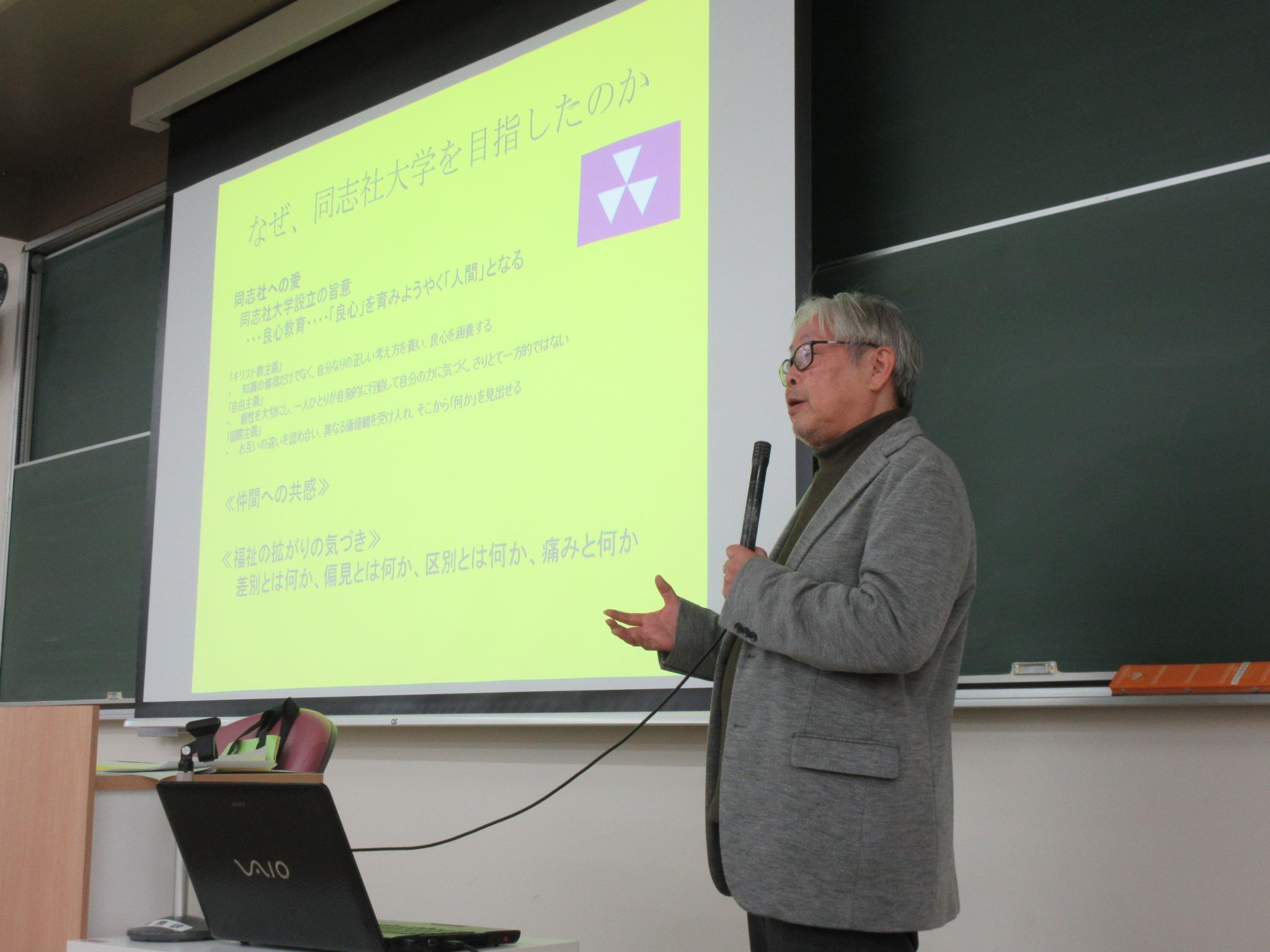 2026年1月30日(金)午前8時40分より、鈴木典夫教授の最終講義が開催されました。鈴木教授は長年にわたり本学類において地域福祉論をはじめとする講義科目、演習・実習科目を担当されました。最終講義では「私の福祉観を振り返って-当事者への思い-」と題し、これまでのご経験をふまえて、地域福祉の現場とその当事者への思いを語られました。