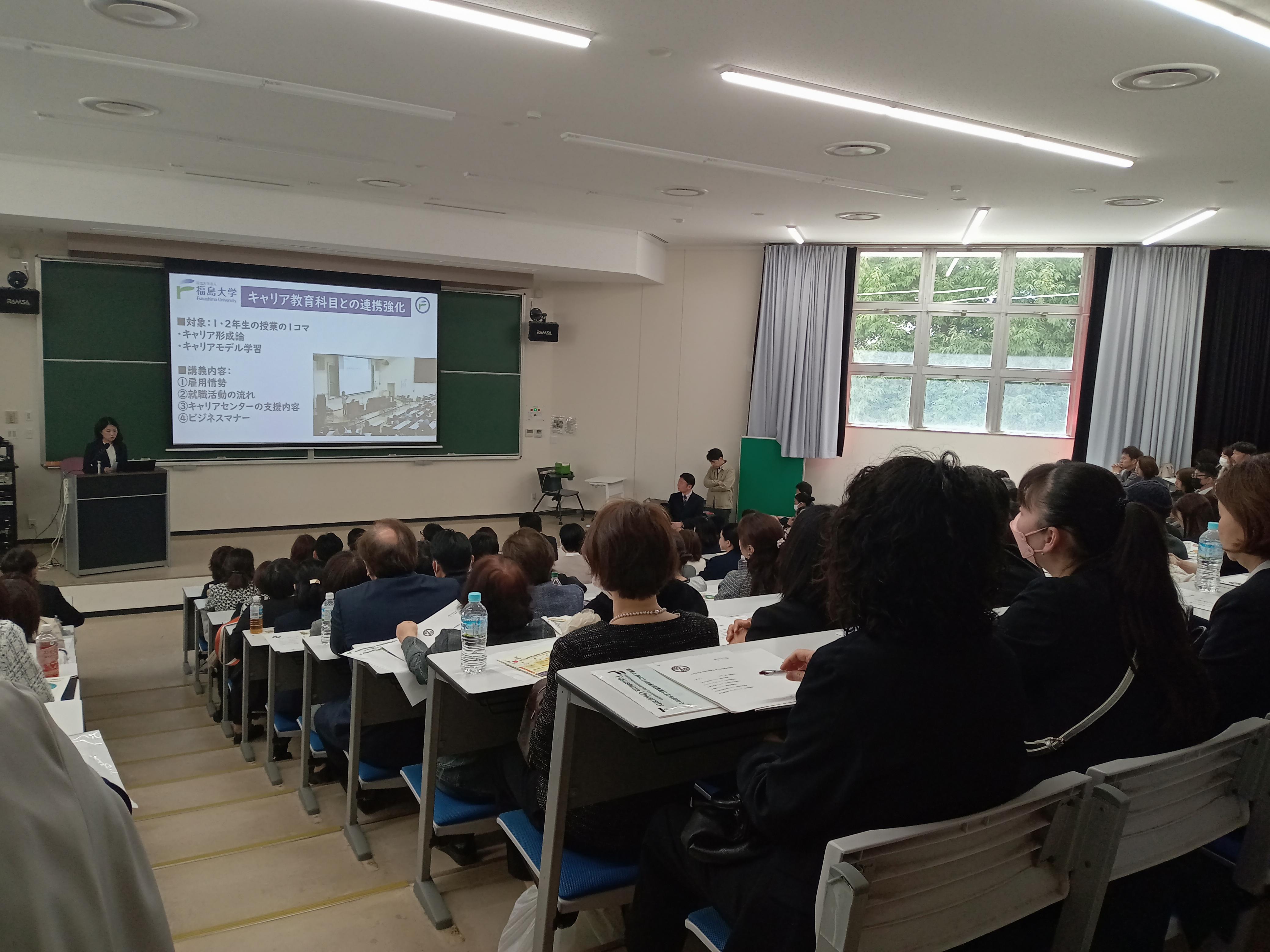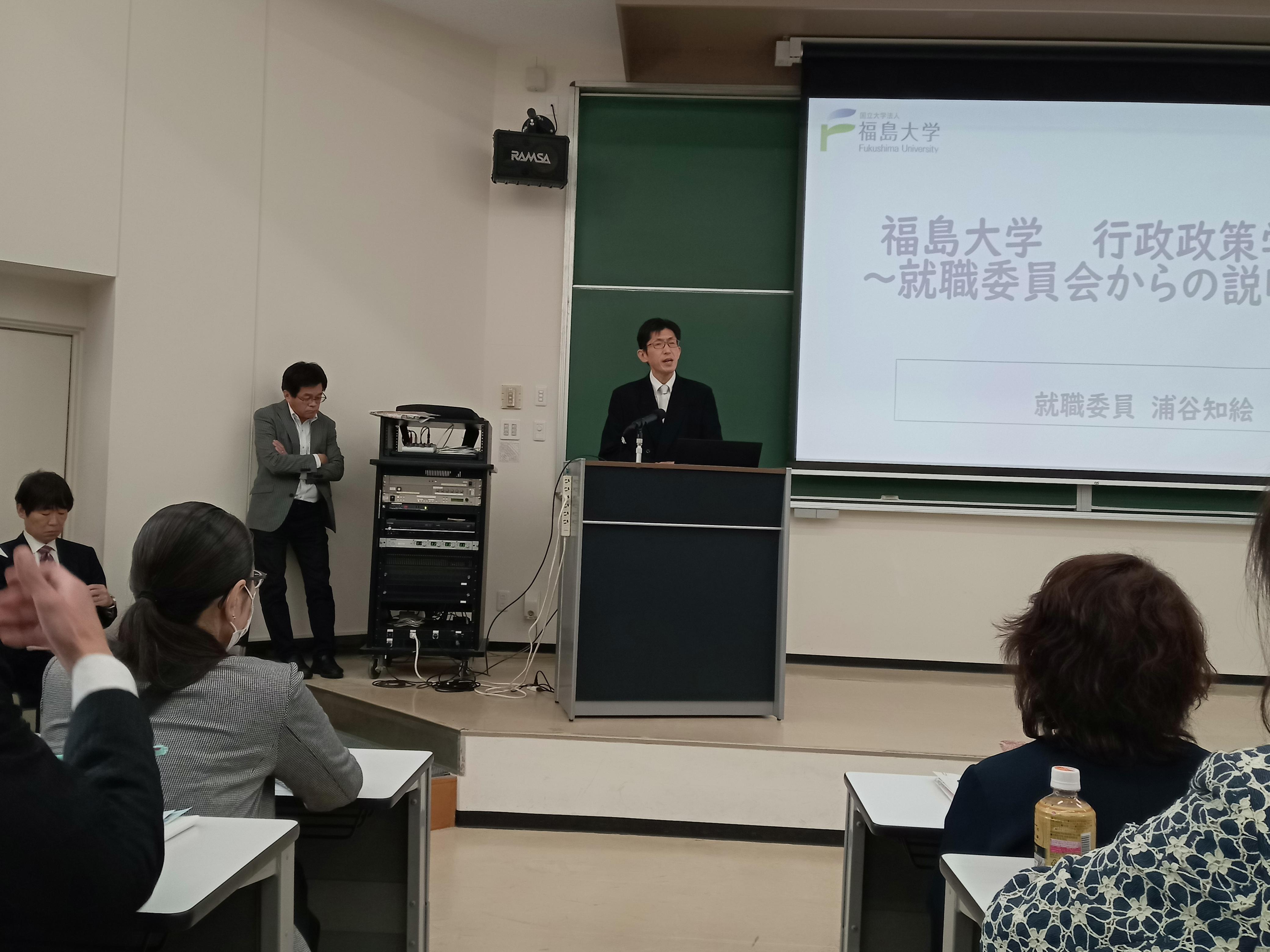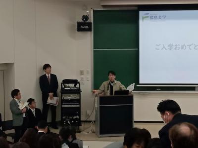 入学式の後には、行政政策学類の保護者の皆さんをお迎えして、保護者懇談会を開催しました。今西一男学類長の挨拶に始まり、学類の教育内容、学生生活、そして、就職の状況などについて、各担当教員より報告・説明を行いました。新しい状況に飛び込む時には、何らかの不安も伴うものですが、保護者の皆さんのご協力を仰ぎながら、教育活動に努めてまいります。今後とも、どうぞよろしくお願いします。